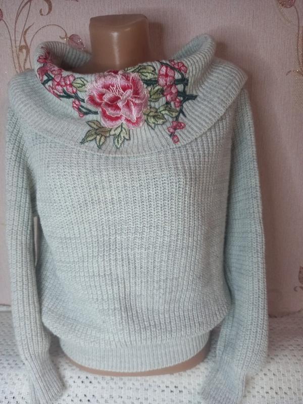 Светр сірого кольору .М'який,приємний на дотик.Носиться з припущеними плечима, вишивка гладдю. Виглядає дуже багато.