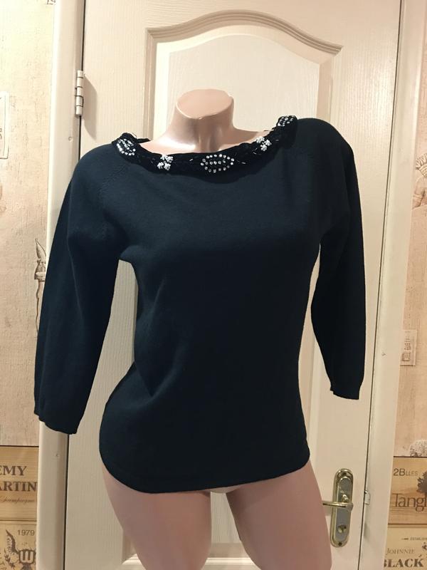Кофта відмінної якості м'яка легка тепла , комірець оксамитовий з перлами та стразами і стеклярусом, рукав 3\4 реглан від ворота 45