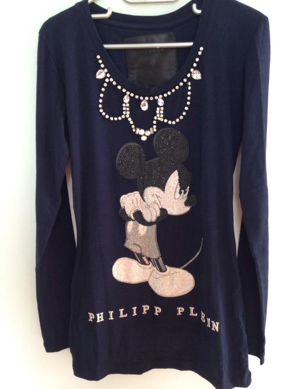 Шикарная кофта Philipp Plein темно-синего цвета с "ожерельем" из больших и маленьких камней, Мики весь расшит черными и серебряными стразами, сзади полностью все в черных, серых и серебряных стразах. Кофта выглядит очень красиво, стильно и эффектно!!! Легкий и приятный материал, не теплая, не парит, 95% хлопок, отлична подойдет на прохладные летнии дни и раннюю осень. Размер XS, по длинне 68 см., по плечам 37 см., обьем груди 74 см., длинна рукава 59 см., кофта немного тянется. Новая, с кожаной этикеткой и биркой.