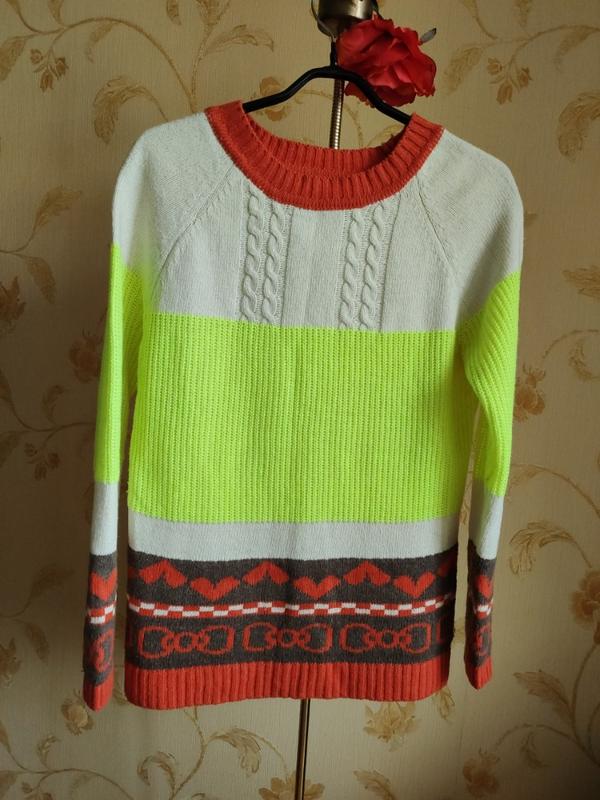Красивый яркий неоновый свитер Ширина 47, длина 68, рукав реглан от горловины 73,