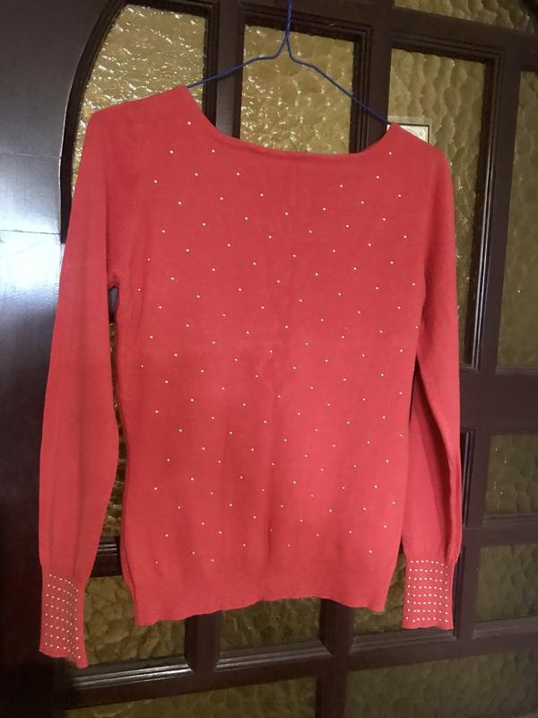 Симпатичний і незвичайний светрик, відмінної якості, одягала два рази, {малуватий і сильно обтягує}, без катишків , стан нового. прикрашений золотими намистинками.ззаду оригінальні бантики з підвіскою