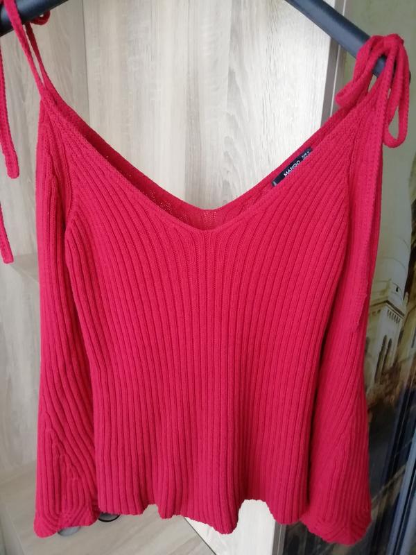 Дуже гарна кофточка вишневого кольору, з розкльошеними рукавами, відкритими плечима. Розмір S-M. Стан ідеальне