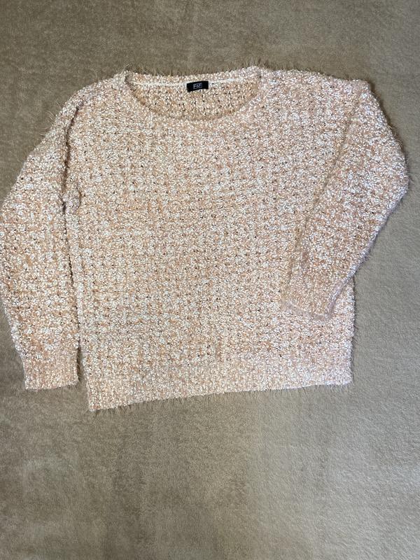 Светр великої в'язки Біло-рожевий Бренду F&F Розмір L-Xl Тягнеться ПОГ58 Довжина рукава 50 Довжина від коміра 61