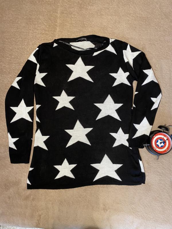 Свитер чёрный в белые звёзды Брэнда Atmosphere Размер 8 Длина от воротника 69 ПОГ 50 Длина рукава 55