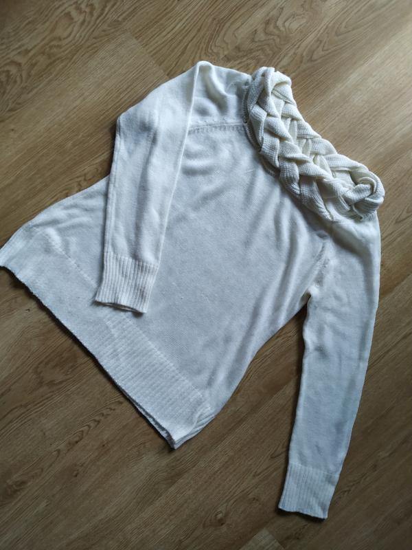 Мягкий вязаный трикотаж. Хорошо тянется. на горловине объемная эффектная коса. цвет ближе к слоновой кости. ПОГ 50 в нерастянутом состоянии