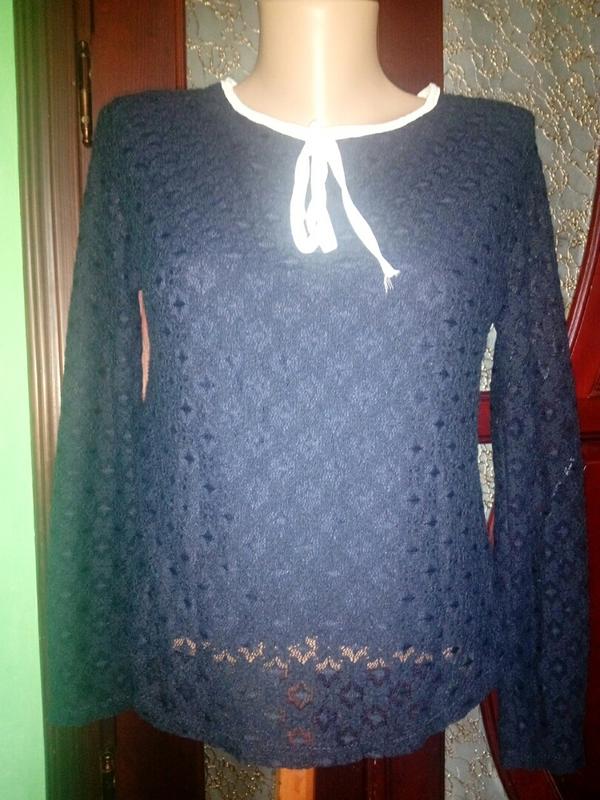 Кофточка в хорошому стані без дефектів. Перед має підкладочку не просвіячується, зад та рукави просвічуються. Довжина 55см. Пог 45см Довжина рукава 56см,внутрішній шов 43см.