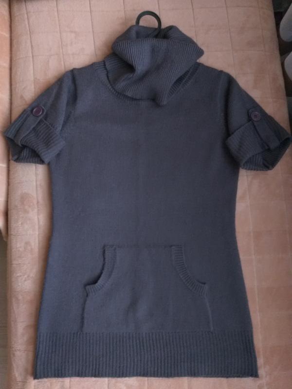 Тепла туніка, кофта. Заміри: довжина від плеча - 69 см; Плечі - 36 см; Рукав - 21 см; Під руками - 47 див. Розмір 44 - 48.