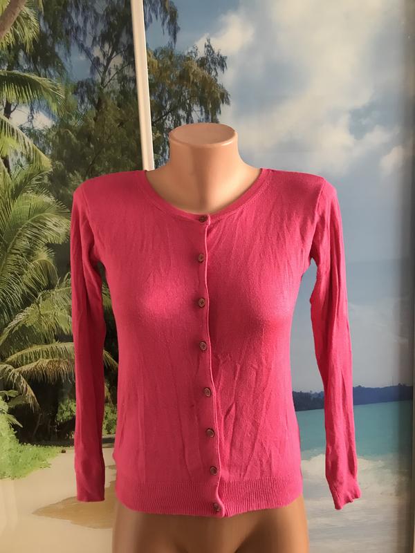 Рожева легка кофта,світер з довгим рукавом ,спереду застібається на ґудзики.Тканина-віскоза,м'яка,приємна на дотик,трохи тягнеться. Довжина 46 см., ПОГ:45-55 см., Рукав-51 см.