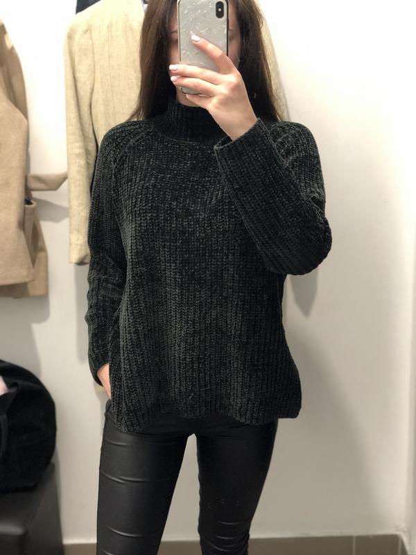 Темно зелений светр , велика в'язка Розмір s-m