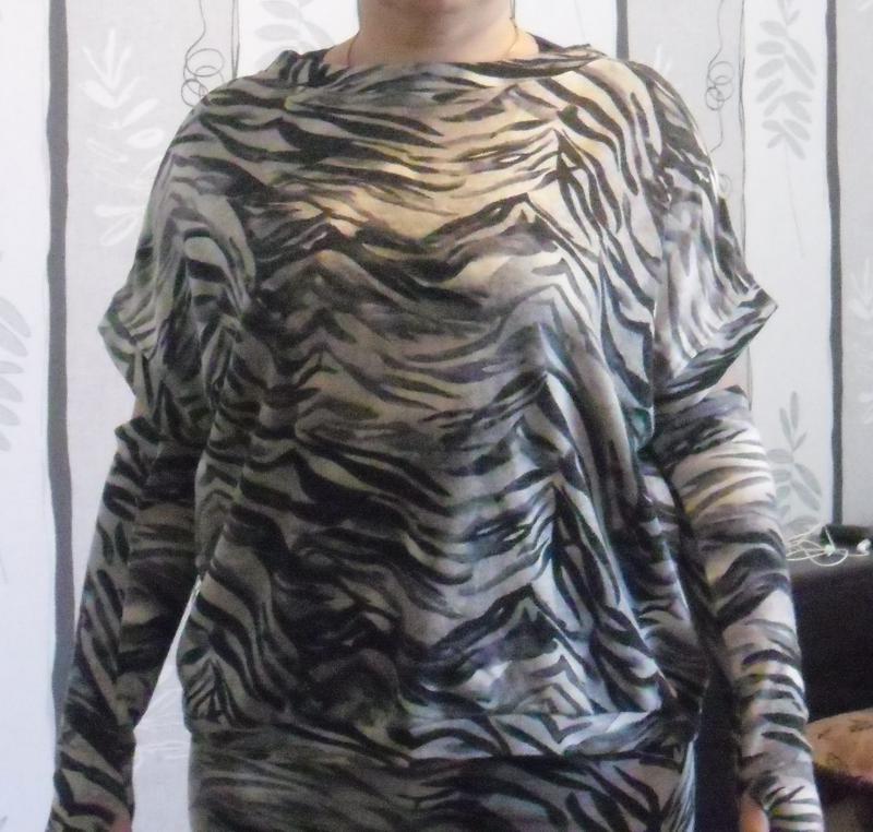СКЛАДАЄТЬСЯ З МИТЕНЕК СВЕТРИ І КОМІРА (спідниці) розмір на 50 ог вільний ширина в грудях-71 див. і ще добре тягнеться довжина самого светри 63 див. найманій юбки44 см ширина спідниці 41 см і тягнеться на 5 см
