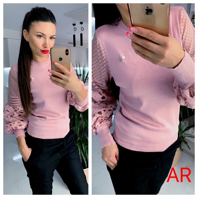 Светр (фабричний Китай) тканина машинна в'язка рукав щільний гіпюр в комплекті брошка розмір 42-46 640 грн