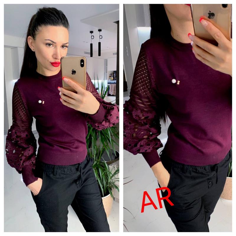 Светр (фабричний Китай) тканина машинна в'язка рукав щільний гіпюр в комплекті брошка розмір 42-46 640 грн