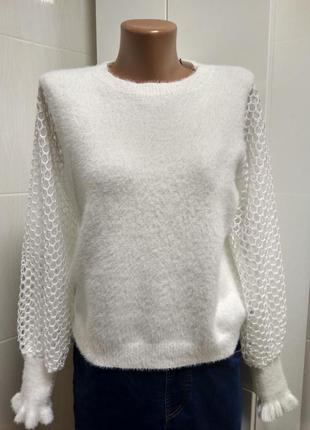 Суперовые мягкое свитера альпака Нарядные рукавчики Рукав мочно подворачивать В наличии белый, черный Длина 50 Пог 48