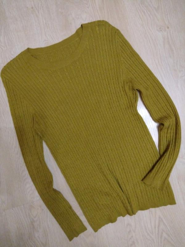 Красивий легкий светр , приємного оливкового кольору. Середньої щільності . Стан ідеальний Тканина приємна на дотик Без пошкоджень і дифектів Довжина зі спини 60 , пог.44-46 см довжина рукава 59.🌿🌿 Всі питання виясняйте перед ОПЛАТОЮ