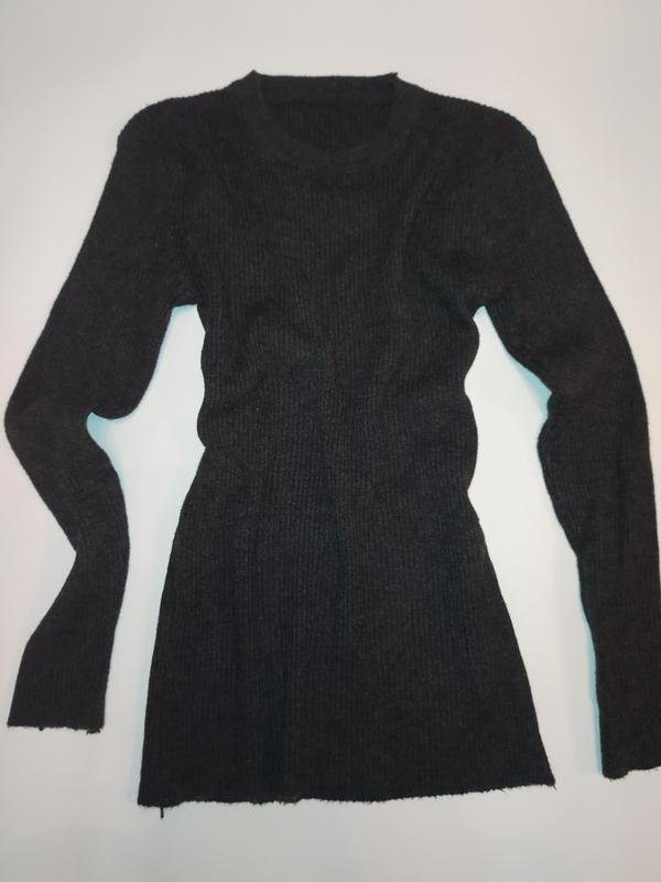 дуже тепла. стан відмінний.Єдиний дефект на спинці плямочка,в шкарпетці не помітно.Тканина м'яка і приємна до тіла, тягнеться заміри: плечі 35 довжина 56 рукав 52 темний Колір графіт