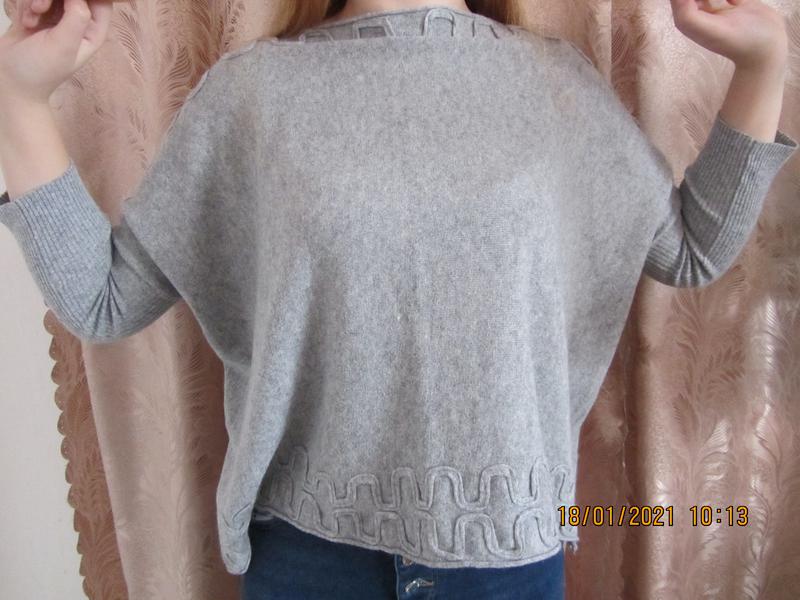Стильна кофта сірого кольору. Має спущене плече. Рукав резинка. ОГ 74см. Ширина по низу 75см. Довжина 50см. Довжина рукава від горловини 59см.