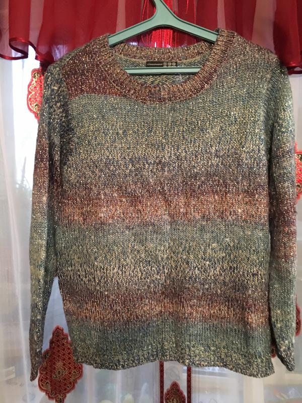 дуже красивий светр зі вставками люриксовой нитки колір як на фото заміри на фото стан хороший размео 48/50