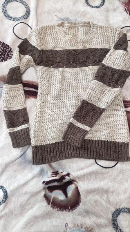Теплий, красивий, приємний до тіла, в'язаний светр. Ззаду, вздовж спини золотисті гудзички