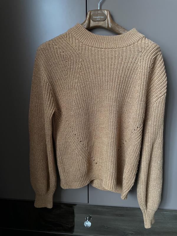 Вказаний розмір М. Рудий светр з золотим люрексом. Виглядає дуже ошатно . Склад і виміри на фото.