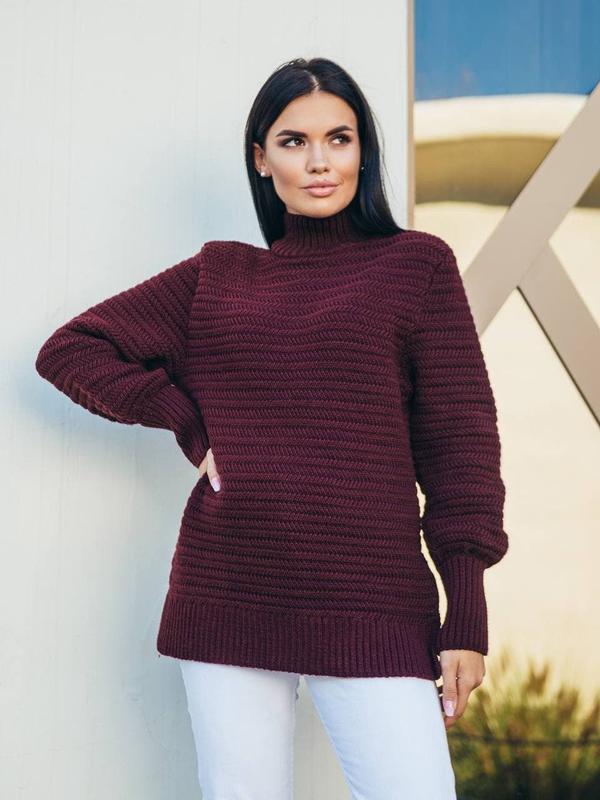 Оригинальный вязаный свитер из полушерсти с боковыми разрезами ▪️Арт. LANVIN ▪️Состав: 50% шерсть, 50% акрил ▪️Цвета: Бежевый Бордовый Кофейный Кэмэл Молочный Оранжевый Чёрный Электрик ▪️Размер : 42-46