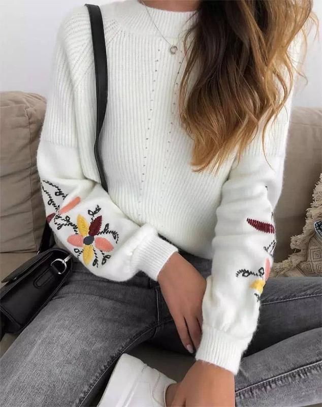 Светр з вишивкою Модель: 5914 Фабричний Китай Розмір: універсальний (42-46) Тканина: машинна в'язка Кольори: чорний, пудра, білий, сірий, джинс