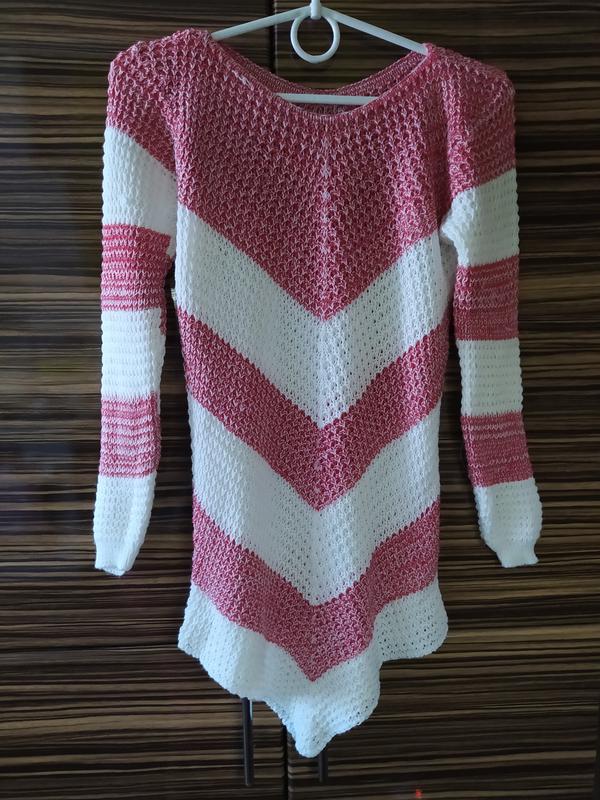 легкий пуловер-светр розмір S-M тканина тягнеться дуже добре виміри в нерозтягнутому вигляді: ширина плечей 37 см ПОГ 38 см ПОТ 35 см ПОБІДИ 45 см довжина 73 см (померяно ззаду по шву) довжина рукава 60 см повна передоплата на карту. доставка Укрпоштою та Новою поштою