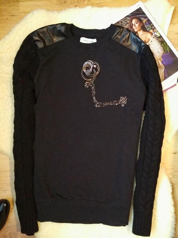 Оригінальний светр. Плечі під шкіру. Спинка і перед Котон, рукави - в'язка. Розмір М-L. Виміри ПОГ 52 см, Рукав 64 см, плечі 43см.довжина 67см