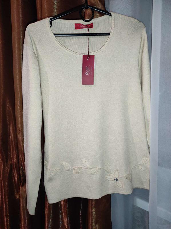 Свитер стильный Цвет молочный Размер 52-54 Состояние новое материал 100% Коттон ПОГ 50 рукав 57 длинна 60
