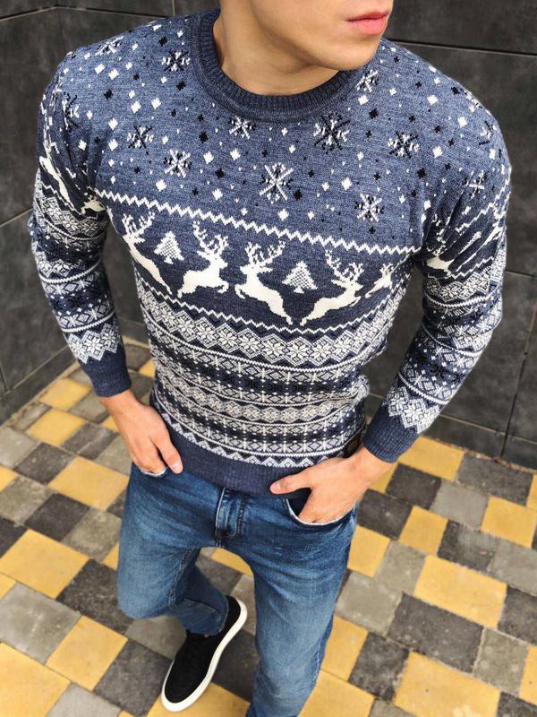 🆘 ОТРИМАЛИ РОЗМІР ХХЛ! 🆘 Чоловічий светр з оленями 🦌 Матеріал: 70% вовна, 30% акрил (не колеться) Розміри: М, Л, ХЛ, ХХЛ Колір: бордо, темно-синій, блакитний