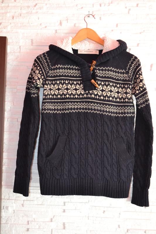 В'язана кофта худі Zara Knit розмір L альо маломірить орієнтуйтесь по замірах. В дуже хорошому стані без дефектів. Заміри грудей 45см, низ 43см. рукав по внутрішньому шві 54см, довжина по спині від капішона 60см