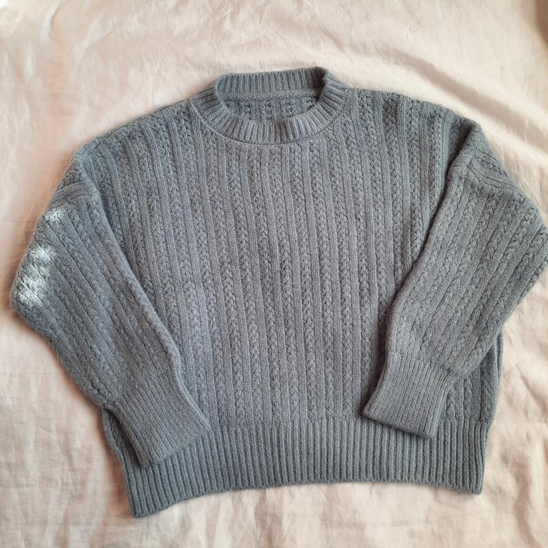 Теплий, щільний светр. Для пишних красунь невисокого зросту. Акрил. Туреччина. Довжина 56 см, Пог 65 см, рукав від горловини 65,5 см. Новий. Колір більш блакитний, не такий тьмяний як на фото. УП, НП.