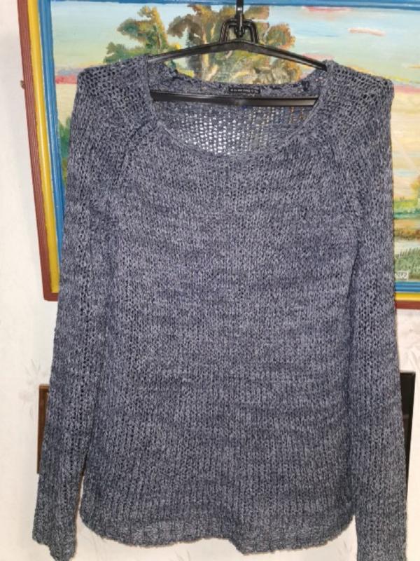 Кофта, светр Cecil, в ідеальному стані, колір не передано правильно, темно синій з білим, цікаве плетиво виконано ниткою а тканинним шовковим шнуром, тобто нитка це тканина. Одягнений пару раз, ніби легкий, але і не холодний Плечі опущені Пог 48 Низ 50 Довжина 66