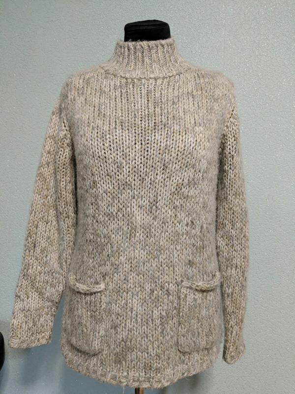 Теплий, об'ємний светр, меланж з трьох кольорів, беж, сірий і білий, в чудовому стані.