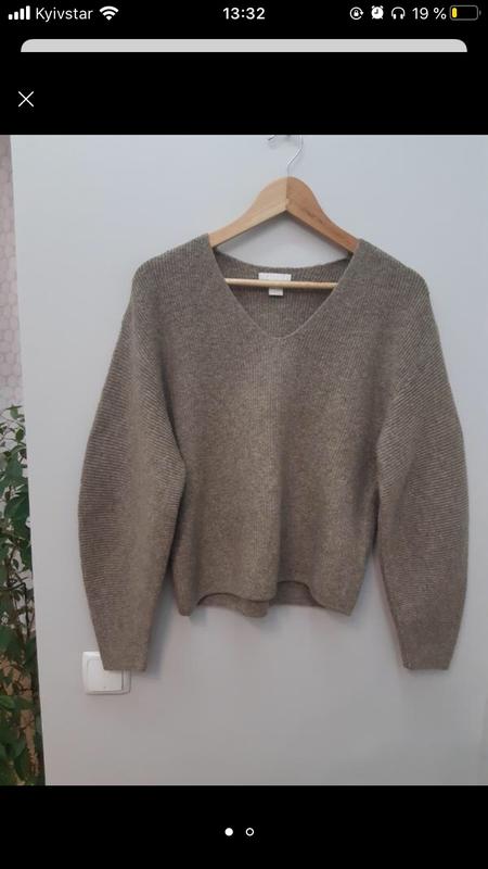 Актуальний светр відомого бренду. Якісна в'язка, теплий, не кусає. Лінія плеча спущена.
