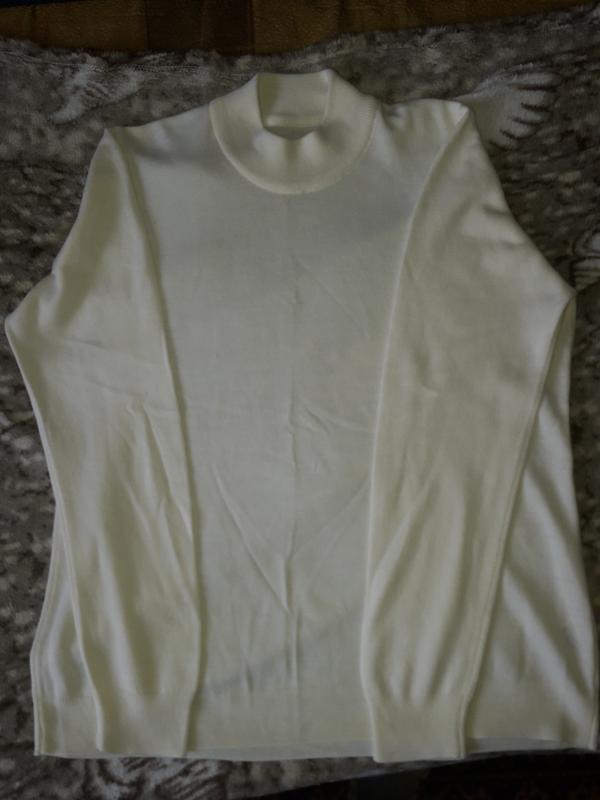 Жіночий базовий светр, молочного кольору, з невеликим шийкою.
