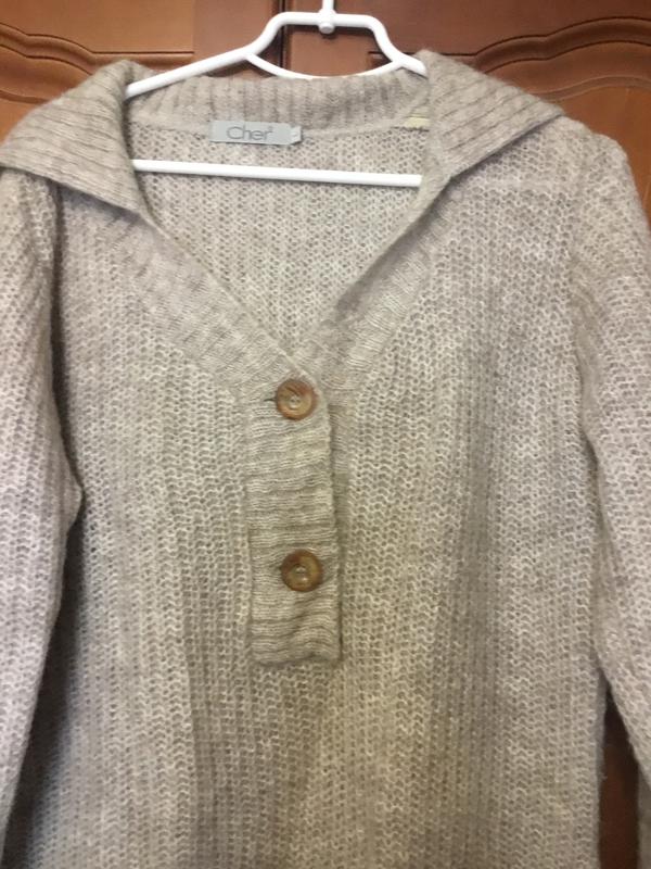 Мохеровый теплый свитер Cher,размер указан L. . Длина 63, плечи 41, подмышки 59, рукав 68. Мохер 50%, па 50%.