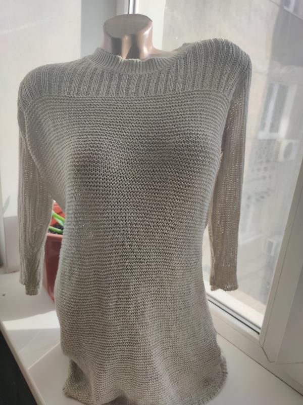 Фірмова в'язана туніка, дуже ніжного молочного кольору. В ідеальному стані. Рукава три чверті. Дуже красиво і сексуально виглядає на тілі підійде як і під купальник, так і для повсякденного носіння. Довжина Рукава пів чверті 44 см плечі 36 см довжина туніки 80 см