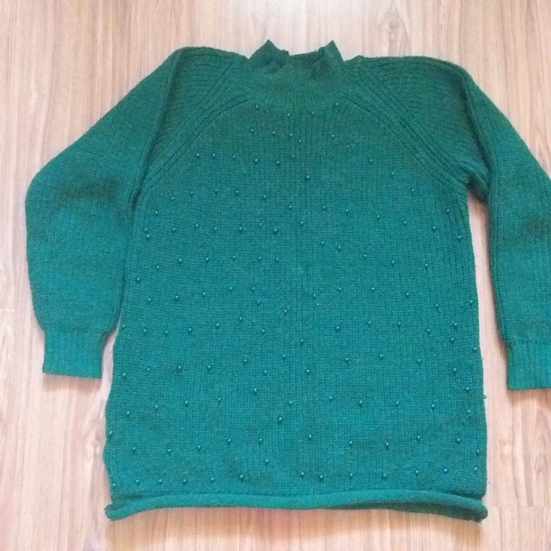 Тепла кофта зеленого кольору, прикрашена намистинами. Розмір 48-50