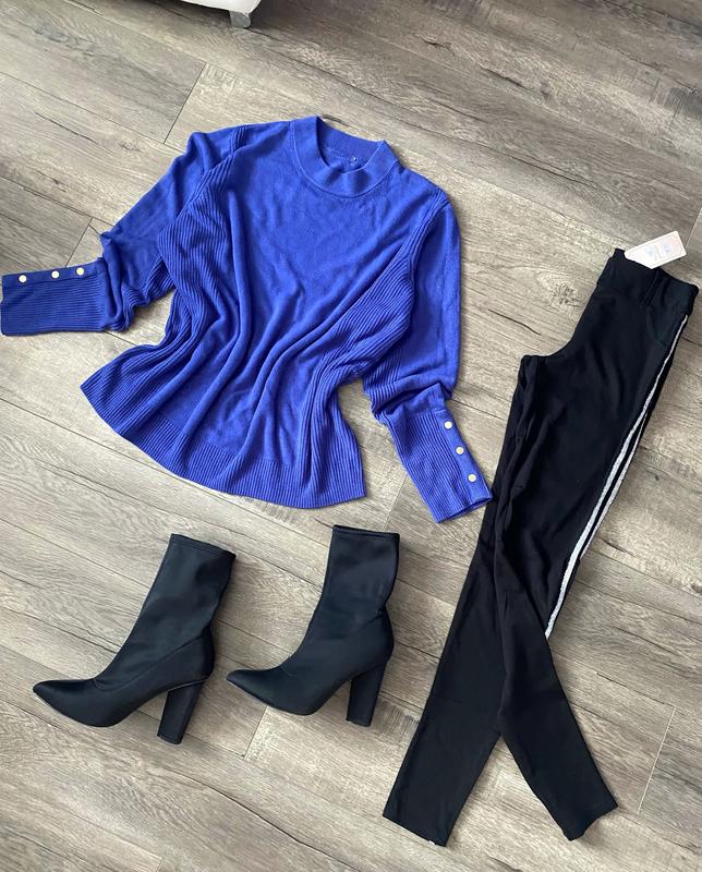 💙Теплий синій светр💙 та чорні лосіни зі смужкою Ціна: светр 299грн, лосіни 380грн Розмір: Светр - Л(М можна як овер сайз) Лосіни - З Стан: ідеальний
