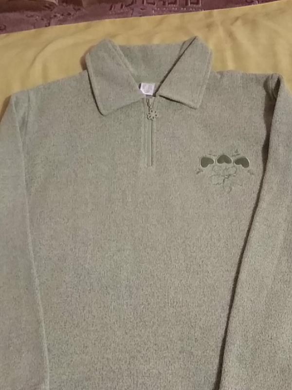 Тепла кофтинка батального розміру ,всередині м'яка ворсу .Колір як на останньому фото .Заміри довжина від верху до низу 74 см , рукав від коміра 75 см , відстань між підмишками 70 см .На замочку.
