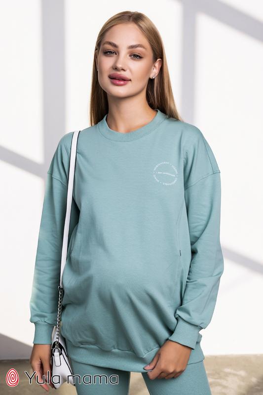 MRIYA LIGHT SW-32.011 Базовий свишот-туніка для вагітних та годуючих з трикотажу двунітка. Силует: oversize. Секрет годування: потаємні блискавки в нагрудних рельєфах. Оздоблення: патріотичний принт на грудях. Тканина: бавовняний трикотаж двухнитка петля (без начісування). Розтяжність тканини: приблизно 5-7 %. Колір: полин. На фотографії: розмір на моделі L, об'єм грудей 95 см, стегон 103 см, зріст 170 см Орієнтовні виміри готового виробу: S: Довжина по спинці 72 см, Довжина рукава від горловини 74,7 см, Груди 114 см, Талія 114 см, Стегна 114 див. M: Длина по спинке 73 см, Длина рукава от горловины 76 см, Грудь 119 см, Талия 119 см, Бедра 119 см. L: Длина по спинке 74 см, Длина рукава от горловины 77,4 см, Грудь 124 см, Талия 124 см, Бедра 124 см. XL: Длина по спинке 75 см, Длина рукава от горловины 78,8 см, Грудь 129 см, Талия 129 см, Бедра 129 см. СОСТАВ: 95% Cotton, 5% Elastane.