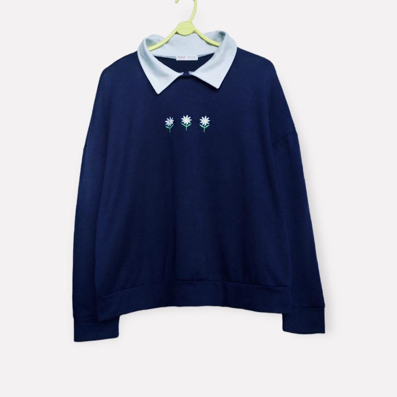 Очень милый и симпатичный свитшот с вышитыми цветами❤️Качество ткани отличное,двухнить.В составе коттон.Состояние идеальное.Замеры: Пог 64,пот 52 , длина 60,рукав от ворота 72