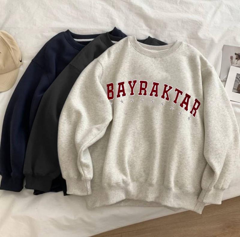 Стильний світшот вільного крою з написом Розмір: 42-46 ( універсал ) Кольори: темно синій, меланж, графіт Тканина: трьохнитка на флісі Манжети з основної тканини 4943-213