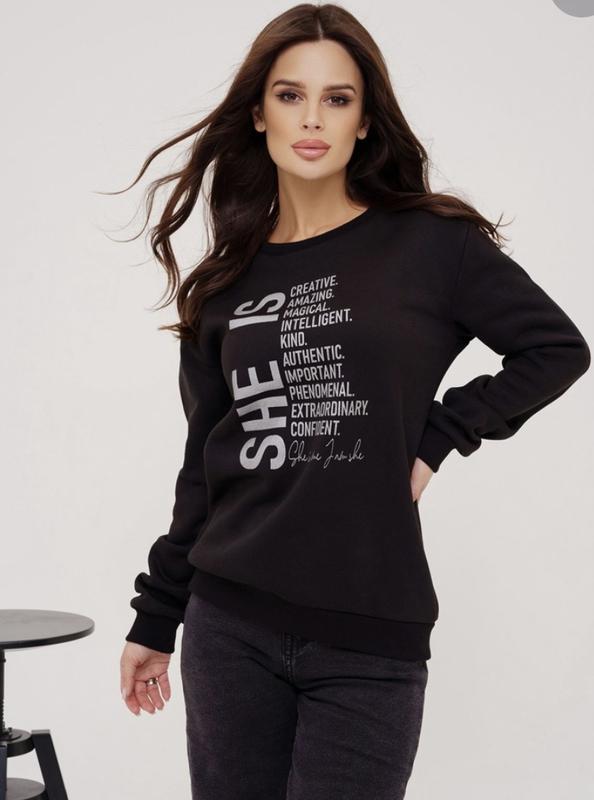 Трикотажный свитшот на флисе.Замеры : размер л: ширина- 51см,длина- 65см,длина рукава - 59см.