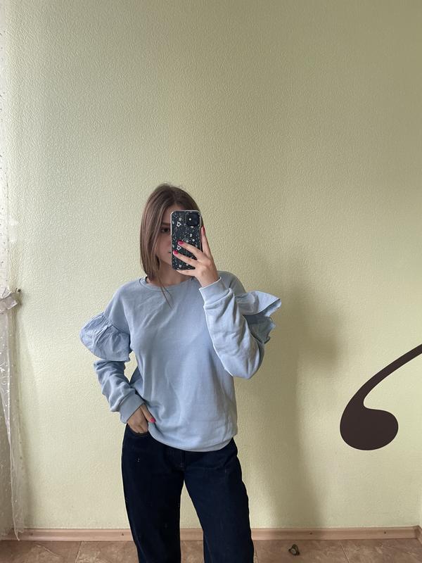 Блакитна кофта,з гарними рукавами та з резинкою внизу