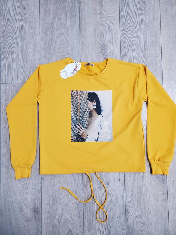 Кофта свитшот, снизу завязка Длина 54см Длина рукава 54см Полу обхват груди 49см