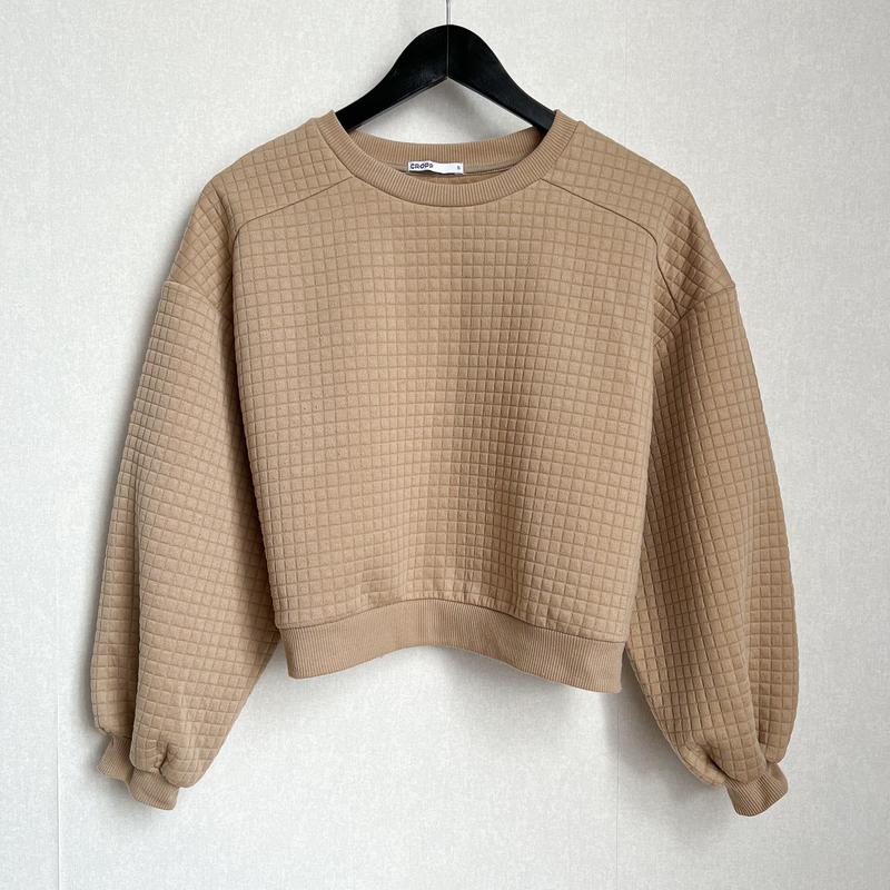 Світшот вільного крою з об’ємними рукавами Стан: новий, без паперових етикеток, в упаковці. Розмір: S, підходить і для М ПОГ 59 см Низ по резинці (напівоб‘єм) 52,5 см Довжина 50 см