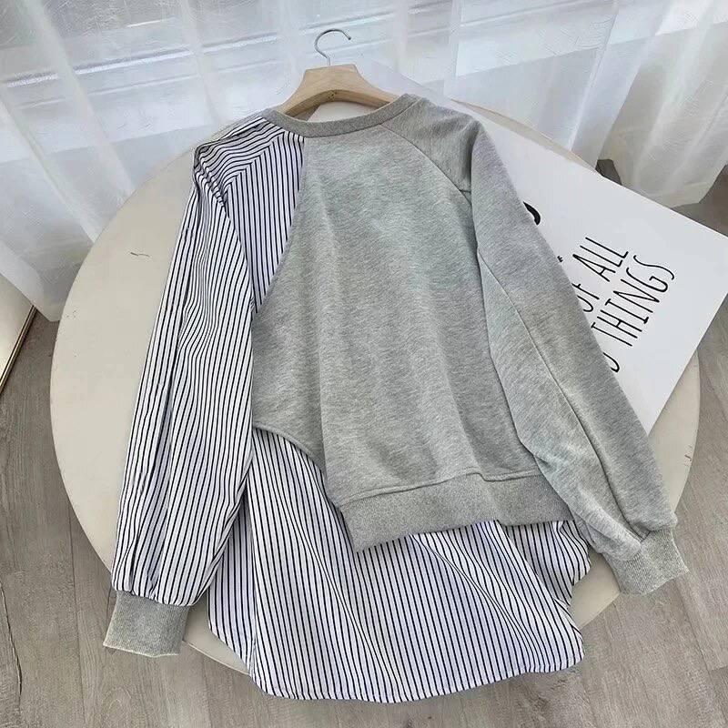 Асиметричний світшот у поєднанні з коттоновою сорочкою Модель : im 0394 Тканина: основа -трикотаж двунить, сорочка - коттон Розміри: 42-46; 48-52 over Опис: Світшот відмінної якості, кольори: чорний та сірий,смужка т. синя. Всі оброблювальні елементи (горловина, манжети рукав та низ кофти оброблено -кашкор)