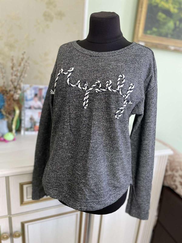 світшот із трикотажу, середньої щільності, кольору сірий меланж, в ідеальному стані, без нюансів, р-р L. довжина 60/64, довжина рукава 56( спущене плече), плечі 16, ПОГ 50, ПОС 52,