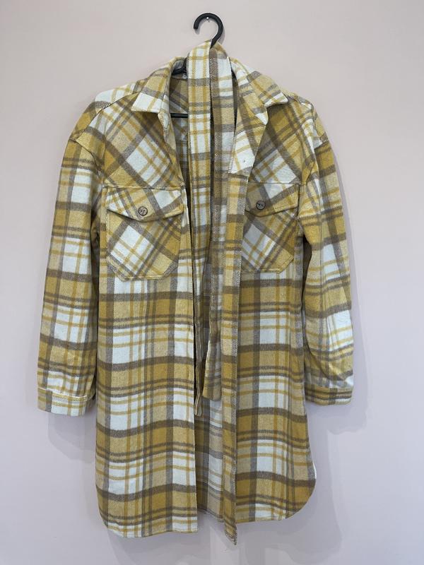 Рубашка в клітинку. Для дівчат не високого зросту, може слугувати сукнею. Під пояс. Тепла.